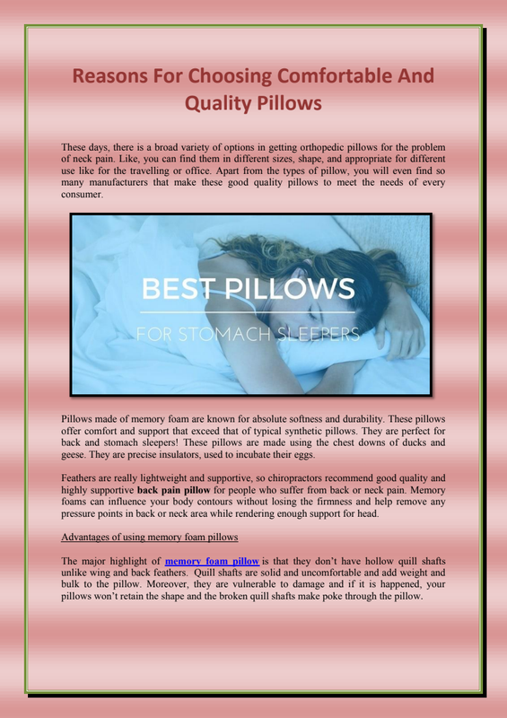 Article Source : http://backpainreliefpillow.mystrikingly.com/blog/reasons-for-choosing-comfortable-and-quality-pillows