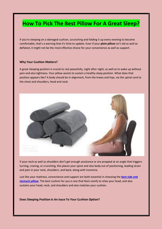 The feather pillow is one more type of chiropractic pillow for neck and shoulder pain, although it is not as preferred as any other kind of chiropractic cushion. Feather pillow will promptly adapt to the head as well as neck placement of the client to make sure that the individual will certainly really feel comfortable sleeping on it. Nonetheless, plume cushion does not sustain your neck as well as shoulder totally, so they will certainly tire quickly when you sleep for a long period of time. Once again, you need to go through experimentation procedures to discover the very best position for you to sleep on plume cushion.