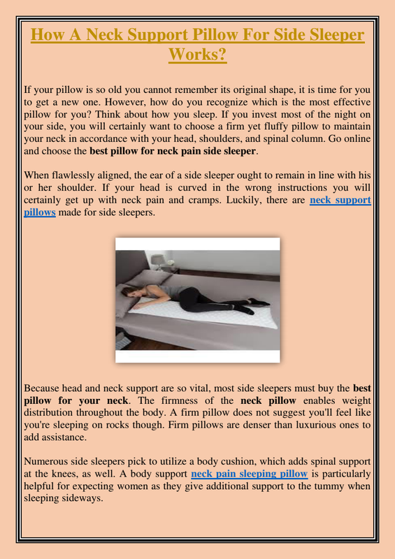 Beginning with the basic ones, we have regular plume pillows which are suitable for nearly every person. Next off in the listing is water pillows, which has an integrated bag full of water. It changes the gap between the neck and shoulder. Orthopedic pillows have a slope so the neck has more support. Drawn from memory foam, they preserve the physique of the customer's mind. Side sleepers’ pillows for neck pain alleviate the stress placed on the back. Lumbar wedge pillows can be made use of while resting in addition to seating. It is a good pillow for neck support especially for those individuals that work on the desk all day long.
