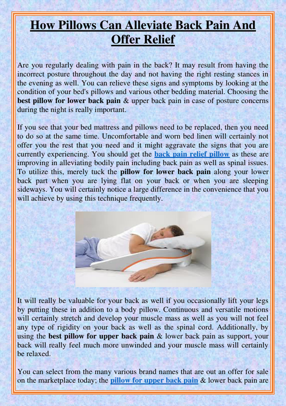 Are you regularly dealing with pain in the back? It may result from having the incorrect posture throughout the day and not having the right resting stances in the evening as well. You can relieve these signs and symptoms by looking at the condition of your bed's pillows and various other bedding material. Choosing the best pillow for lower back pain & upper back pain in case of posture concerns during the night is really important.