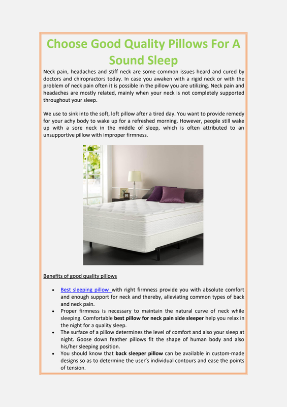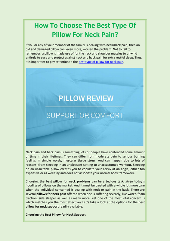 Article Source : http://backpainreliefpillow.mystrikingly.com/blog/how-to-choose-the-best-type-of-pillow-for-neck-pain