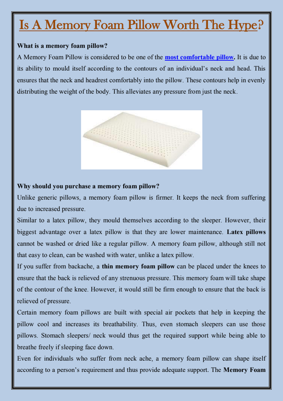 But whatever memory foam pillow you are interested in, it wouldn't be complete if you are still applying the traditional mattress, whether lap or spring or foam. Your simply curvy body has trouble adjusting to the flat facade of a mattress and consequently creates tension to build on your shoulders, hips, and knees, around specific areas. When this occurs, the blood supply is decreased, causing distress. A part of your spine is also not held and could create back pain. Oftentimes, this trouble could commence to poor sleep and posture, where you would roll around in bed seeing for the comfiest position.