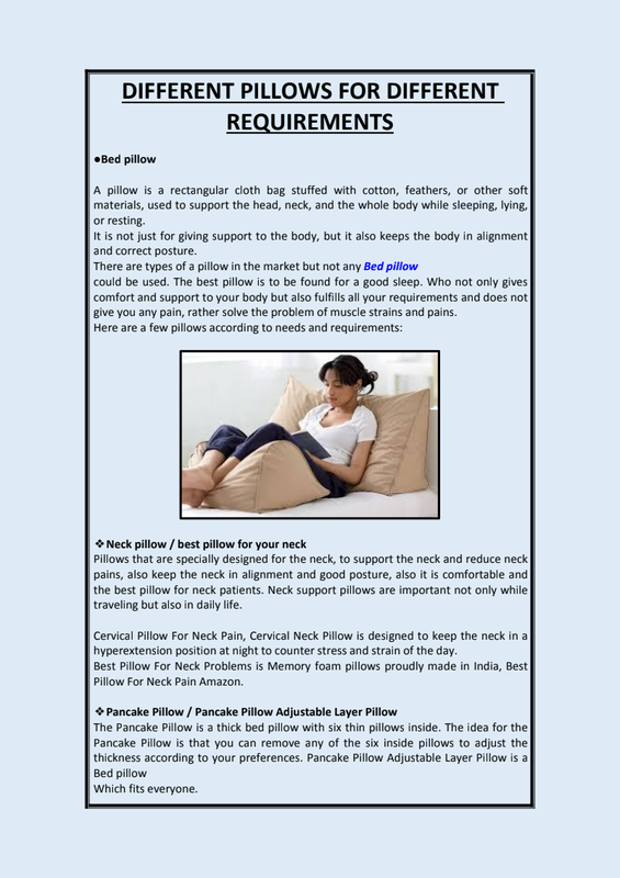 Here you can see the different types of pillows and choose according to your comfortability and needs.